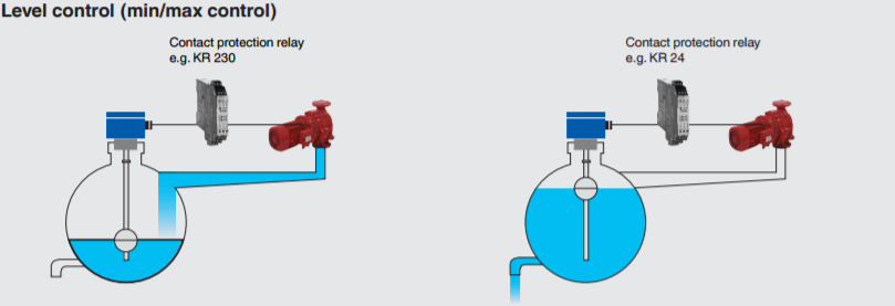 Through the use of a float for a max. of 2 switch points a bistable switch operation can be achieved, meaning that the switching status also remains available, when the filling level continues to rise above or drop below the switch point.